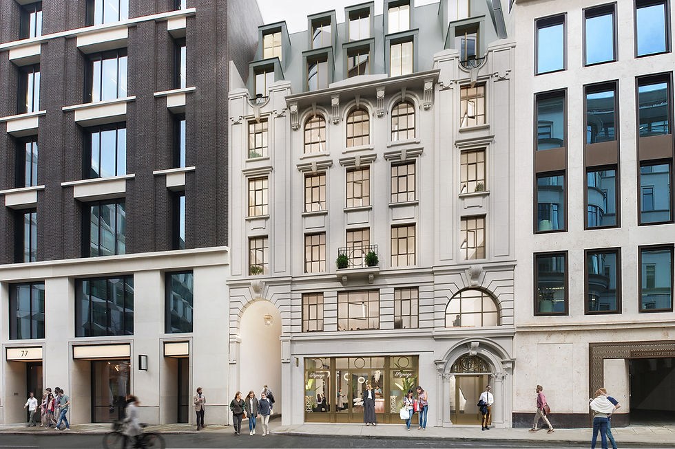 External daytime CGI visual of 74 Coleman Street, London. A heritage façade revitalised with contemporary design, rendered by Digital3dworks.